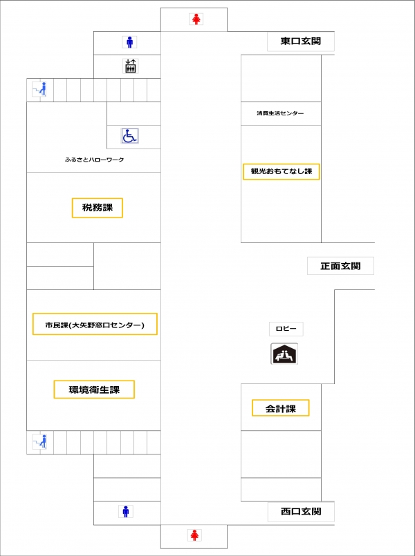 [ホーム] > [市民の方へ] > [フロアマップ] > 大矢野庁舎フロアマップ