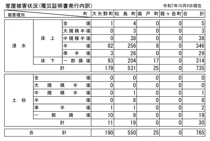 - 2025年10月3日 令和7年8月の大雨に係る被害状況について
