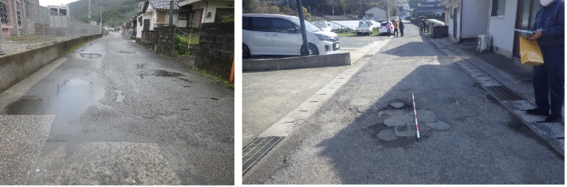 市道のアスファルトやコンクリート舗装は、老朽化などの原因により路面の凹凸、ひび割れが発生します。その結果、走行性が悪くなるだけでなく道路を利用される方の転倒や事故の原因となる場合もあります。
