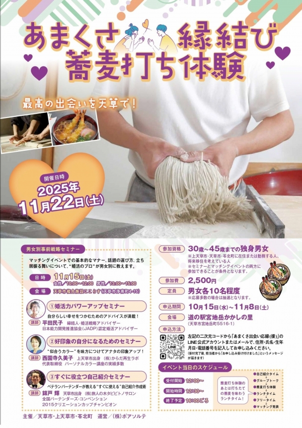 30歳〜45歳の独身男女※上天草市・天草市・苓北町に在住または勤務する人、将来移住を考えている人