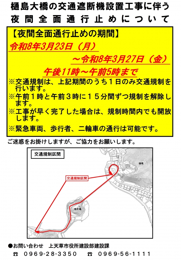樋島大橋を通行される方には大変ご迷惑をお掛けしますが、ご理解とご協力をお願いします。