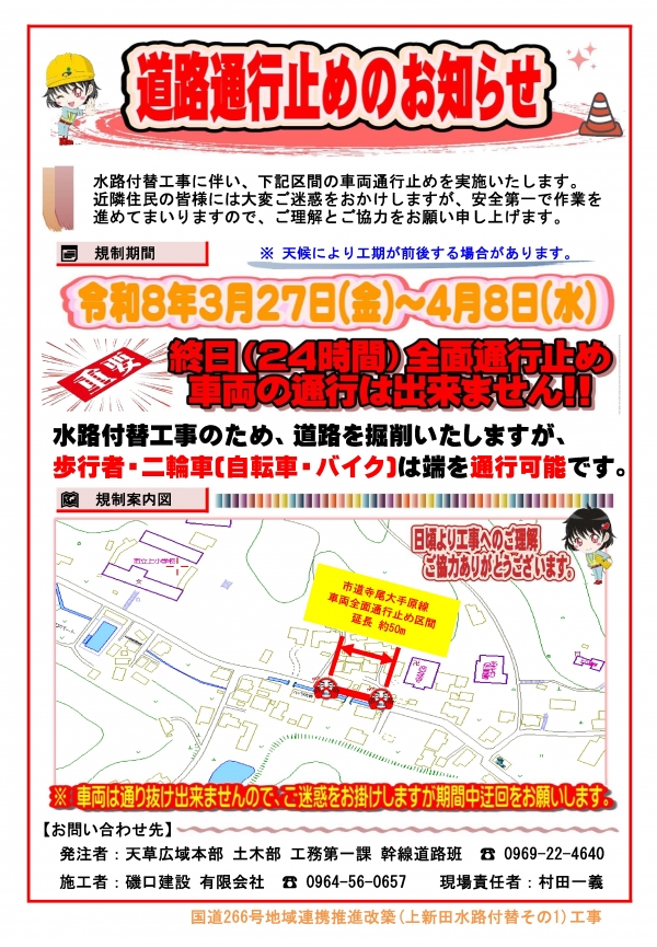 当該道路を利用される方には大変ご迷惑をお掛けしますが、ご理解とご協力をお願いします。