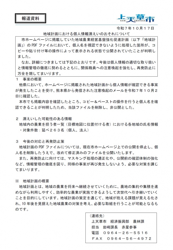 【報道資料】地域計画における個人情報漏えいのおそれについて