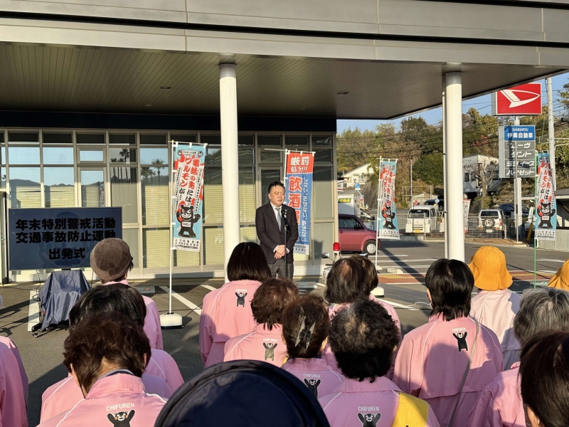 12月18日(木曜日)に、上天草警察署駐車場において、特別警戒活動・交通事故防止運動出発式が開催されました。