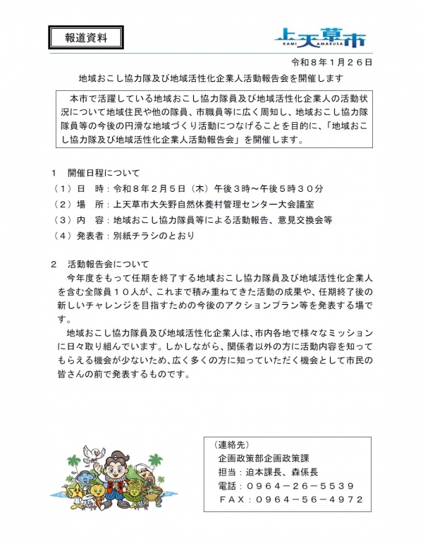 【報道資料】地域おこし協力隊及び地域活性化企業人活動報告会を開催します