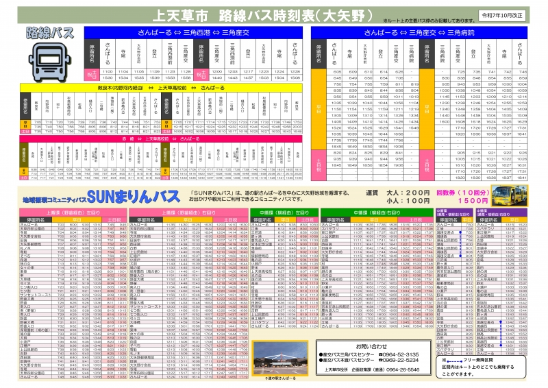 上天草市公共交通(路線バス・乗合タクシー)の路線図および時刻表 ※令和7年10月更新