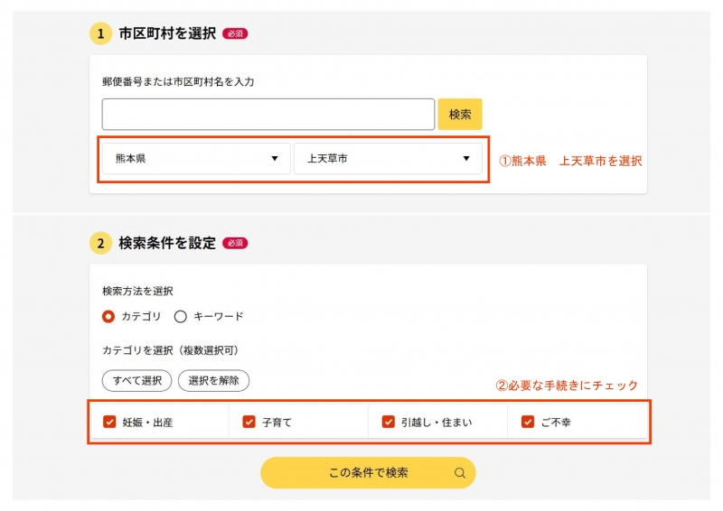 (2)『検索条件を設定』にて必要な手続きを検索してください。