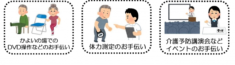 上天草市生活支援・介護予防サポーター(Kamiサポ隊員)とは、高齢者が生活するうえで困るゴミ出しや電球の交換などの「ちょっとした困りごと」へのお手伝いや、かよいの場の運営のお手伝いをするボランティアです。