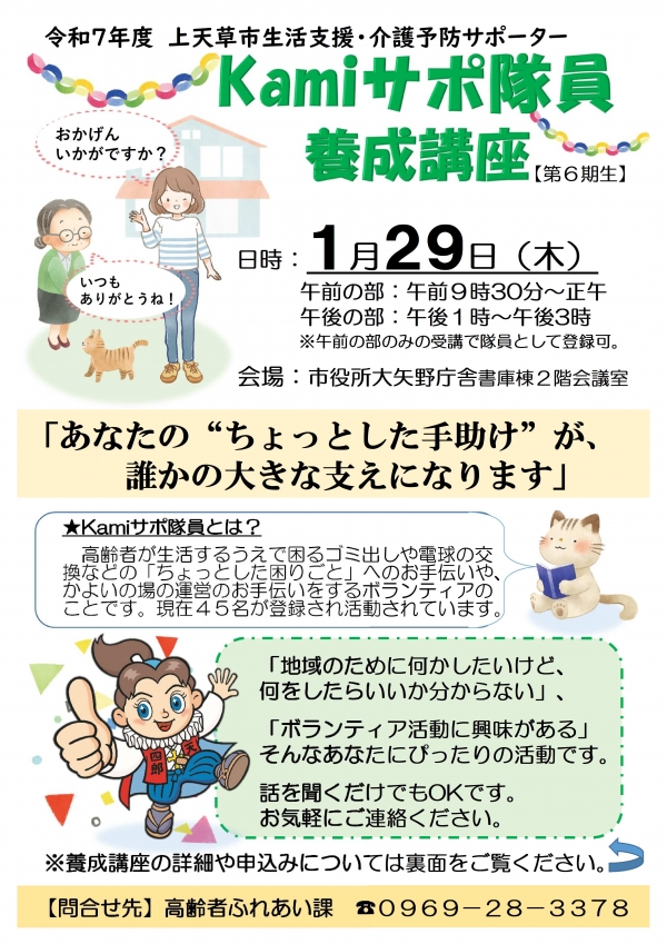 令和7年度上天草市生活支援・介護予防サポーター(Kamiサポ隊員)第6期生養成講座のお知らせ