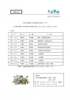 [2017年8月2日] 【報道発表資料】上天草市9月定例会の日程について